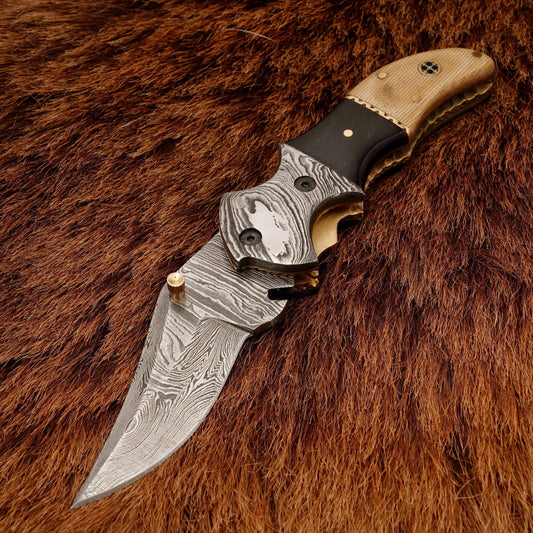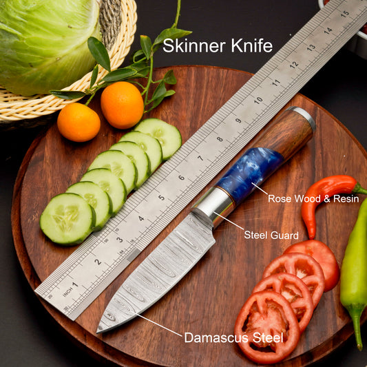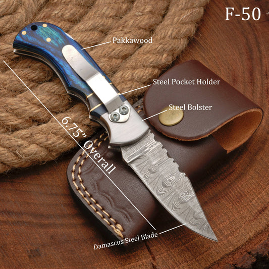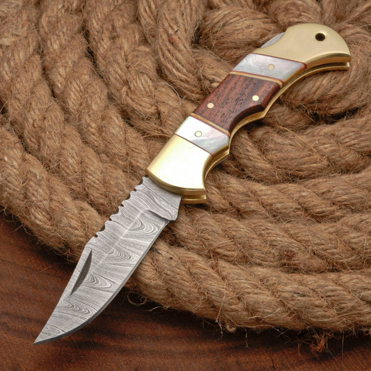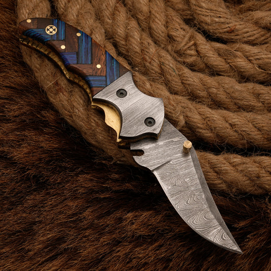 Beautiful knife. The Damascus steel looks awesome and I love the blue pakka wood. If you have small hands this won't be for you. The handle is big but it fits my paws fine. This knife is not a full tang so I won't be using it as a bush craft tool. It's suitable for daily carry as well as self defence and its a great conversation piece.