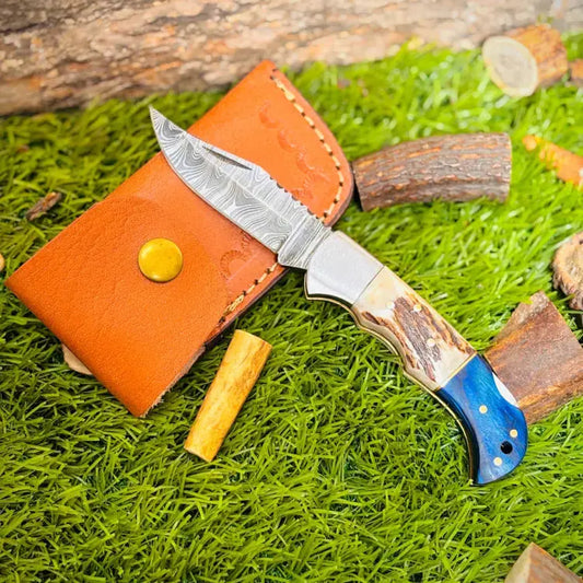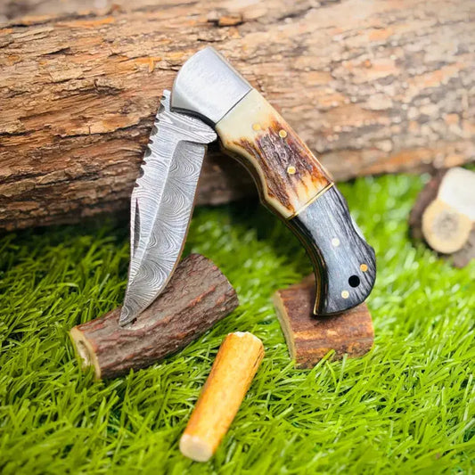 Deep down at our core, we are knife enthusiasts, and we know what other knife lovers look for: quality, distinctiveness, and style. Our Damascus pocket knives are made to fit every user's needs because we have a variety of these knives. From the Handmade Damascus Pocket Knife with Damascus Bolster to the Custom Handmade Stag Horn Foldable Knife, our collection offers versatile, premium-quality options like the Camping Folding Knife and Custom Made Damascus Steel Hunting Pocket Knife, crafted for everyday carry, gifting, and adventure. Check out the whole variety of our pocket knives right away and pick the one that goes with your choice.