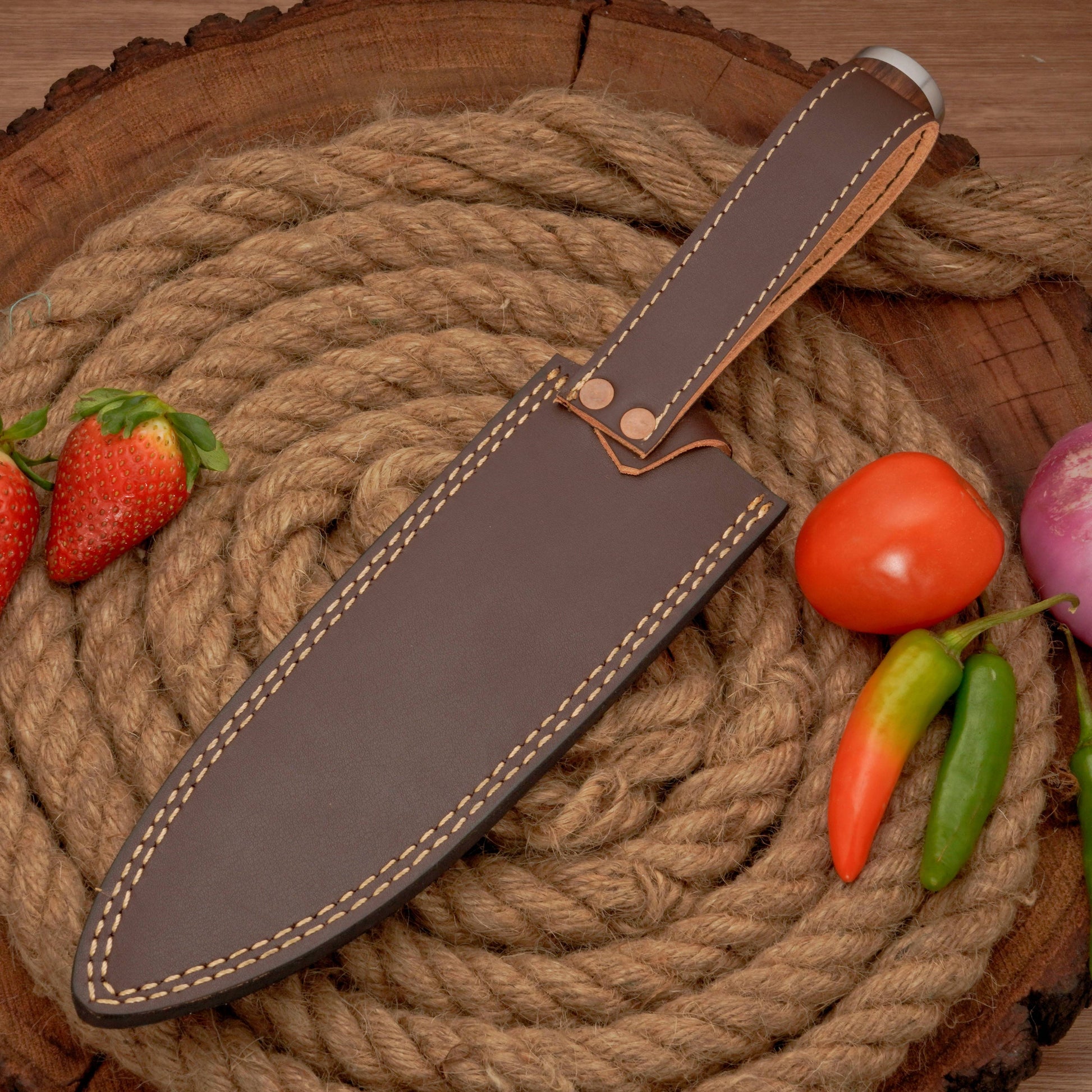 Forged from D2 high-carbon stainless steel, the blade offers outstanding sharpness, wear resistance, and edge retention. It is made to serve all your kitchen cutting needs without any flaws. The hand-forged chef knife design ensures long-lasting strength and resilience for demanding kitchen tasks.