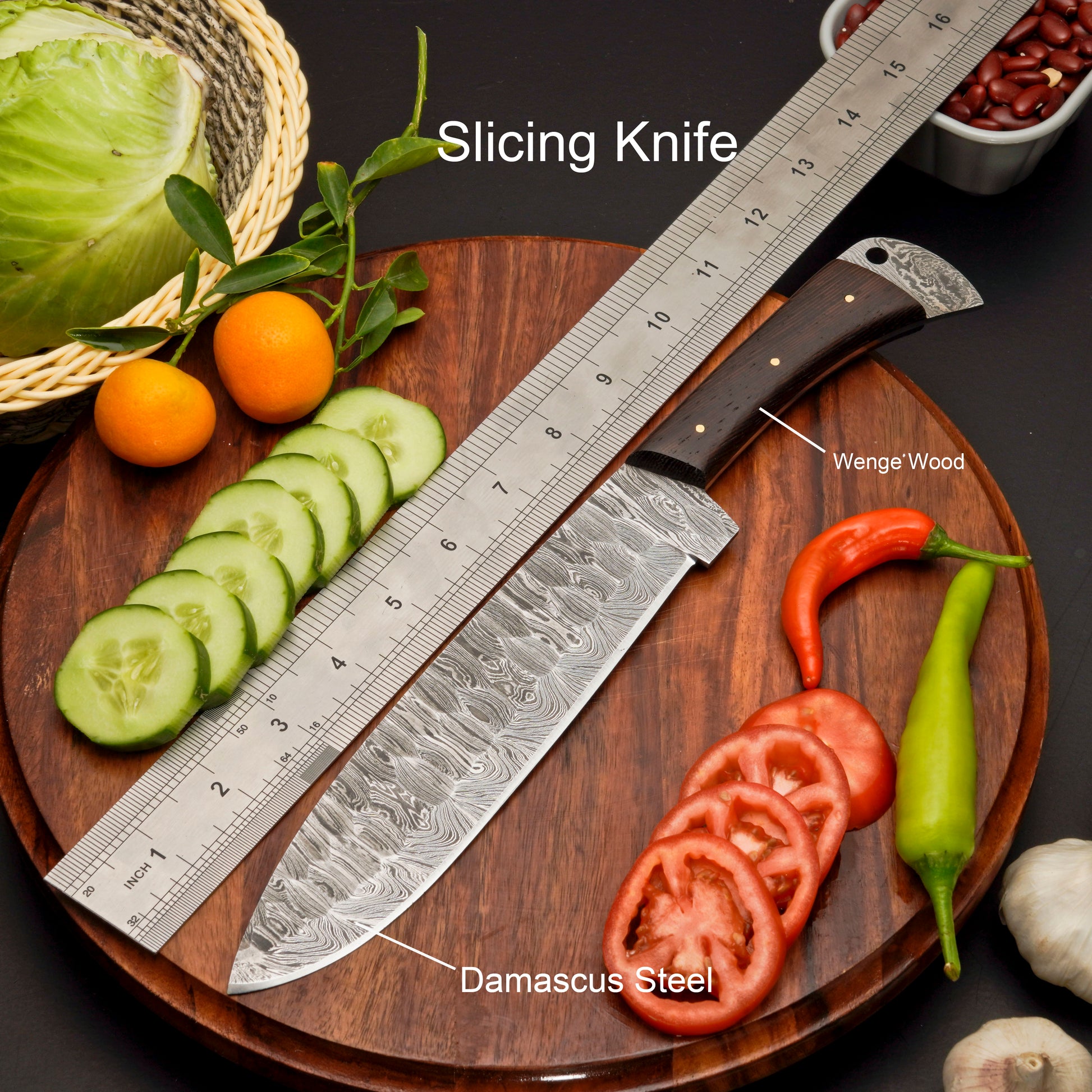 Slicing Knife: 13" overall (8" blade, 5" handle)