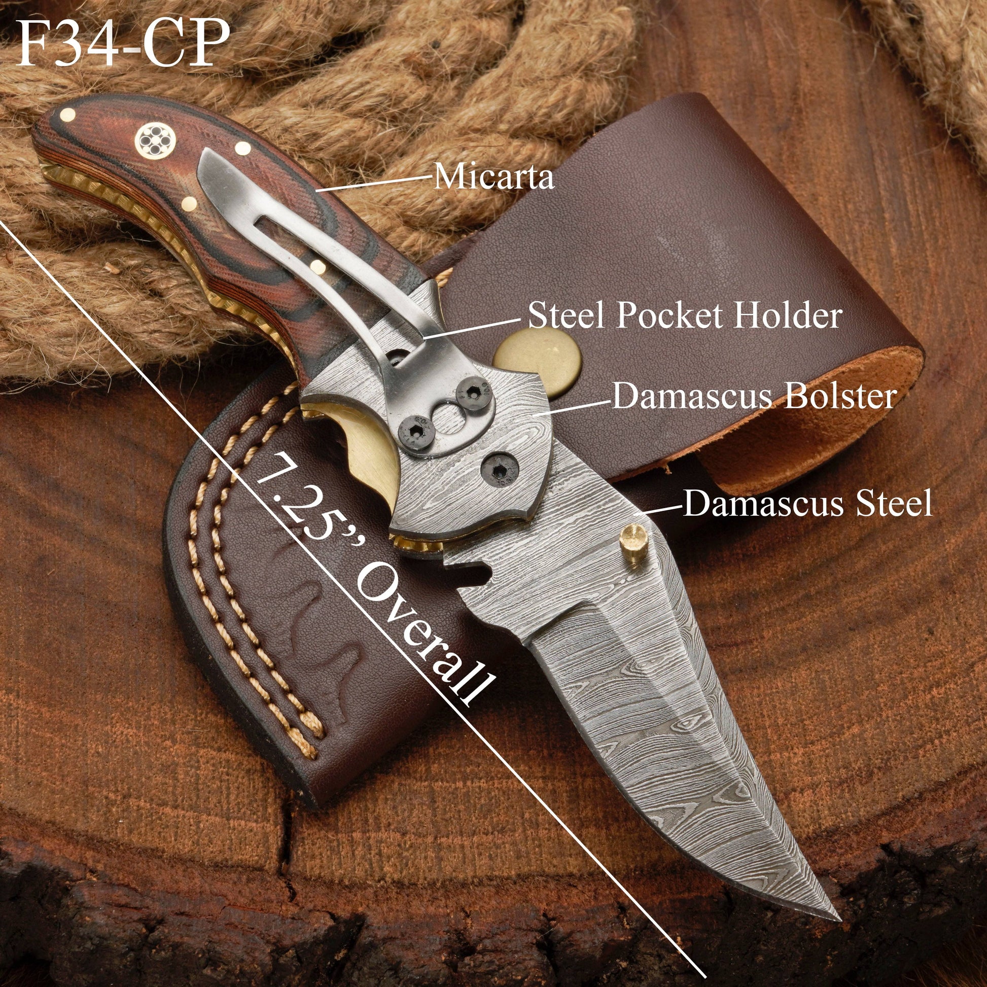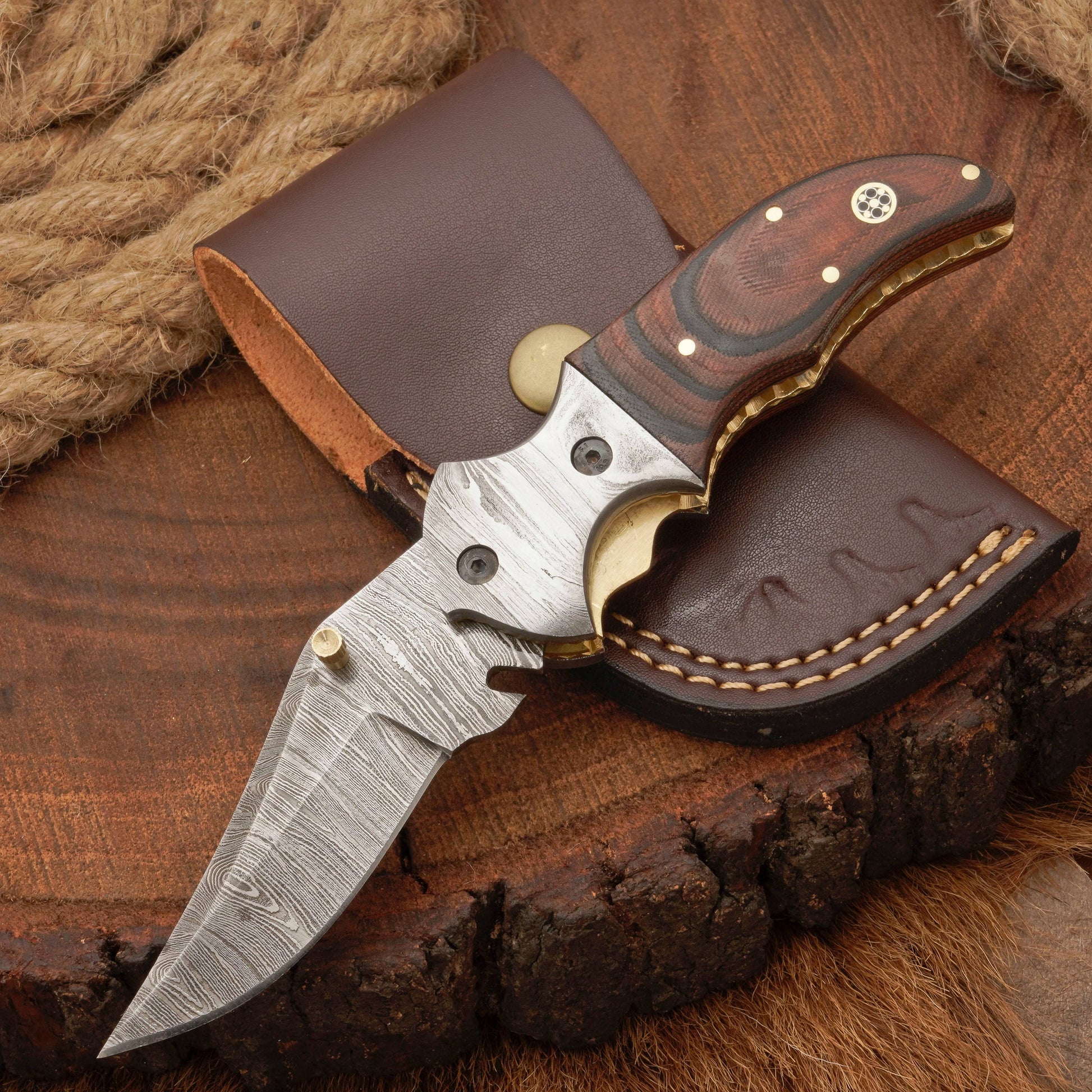 This EDC pocket knife comes with a thick, durable, 100% genuine leather sheath. Like all our knives, this folding knife is 100% handcrafted with high-quality materials. We ensure that the handle materials, blade steels, and leather sheaths are professionally made with no compromise on quality.
