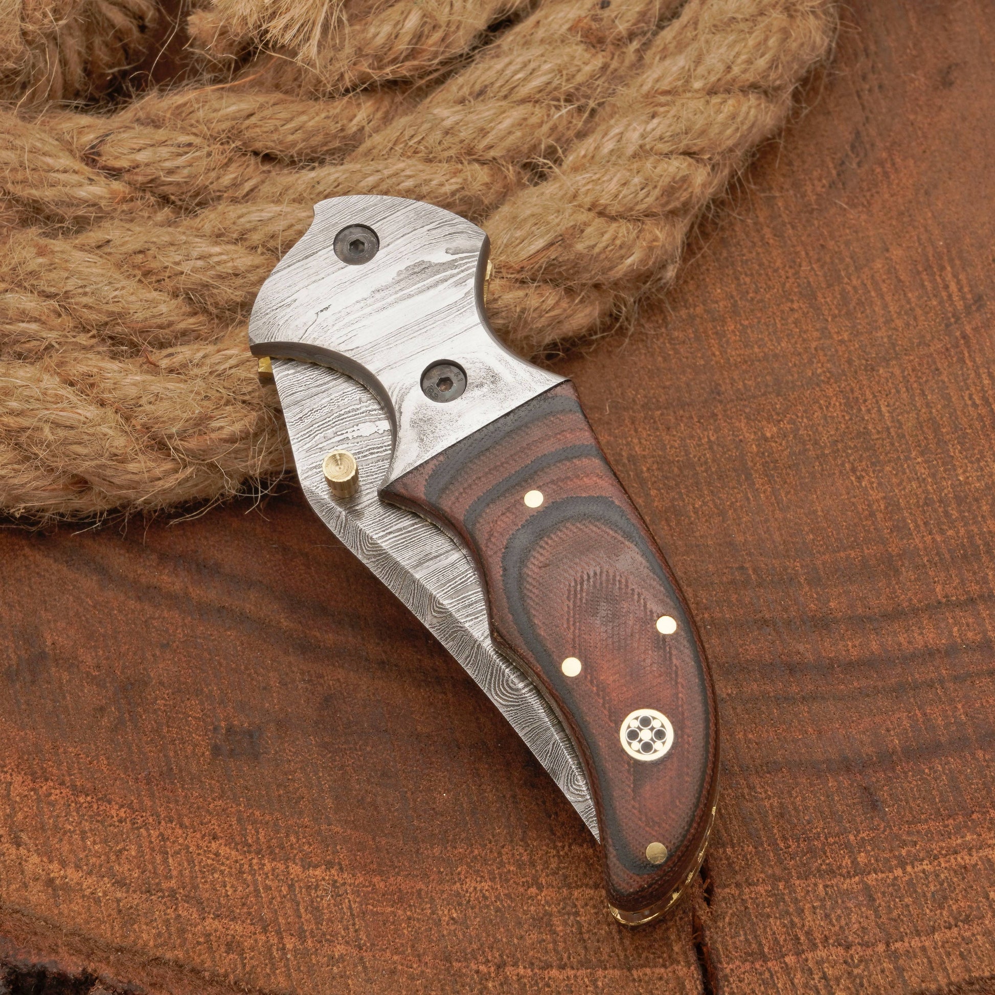 The handle offers a comfortable grip, the blade is exceptionally sharp, and the knife is perfectly balanced. These genuine handmade forged Damascus steel knives are not mass-produced. Each pocket knife features a unique Damascus blade—true Damascus steel—and the natural handles cannot be replicated.