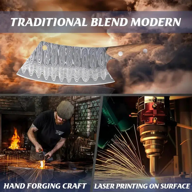 Inspired by ancient Japanese craftsmanship and hammered into contemporary use, this hand-forged Japanese meat cleaver knife brings strength, accuracy, and tradition in one durable knife. Chopping through meat, crushing through bone, or meal prepping at the campsite, this full-tang cleaver is the butcher's best ally and essential for every serious chef or outdoor cook.