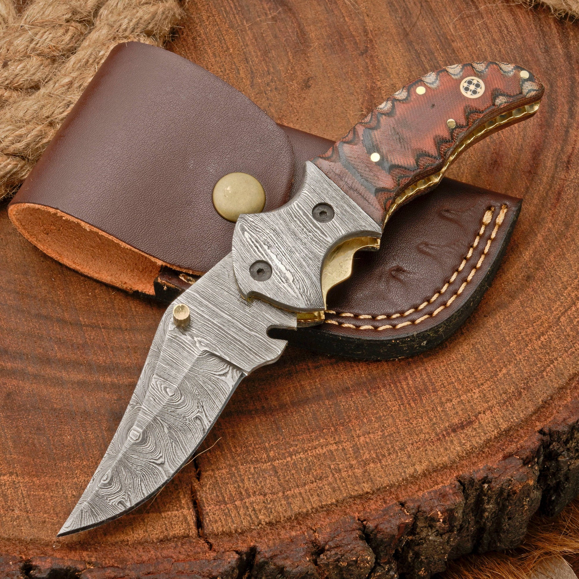 This pocket knife comes with a thick, durable, 100% genuine leather sheath. Like all our knives, this folding knife is 100% handcrafted with high-quality materials. We ensure that the handle materials, blade steels, and leather sheaths are professionally made with no compromise on quality.